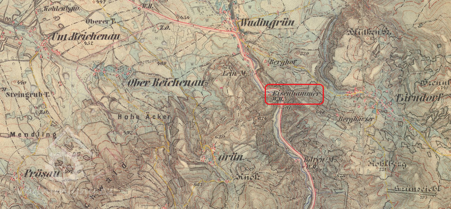 1785 Jaroslav Schaller Topographie des Königreiches Böhmen: „…dle starých zpráv zde prý býval Železný mlýn“.