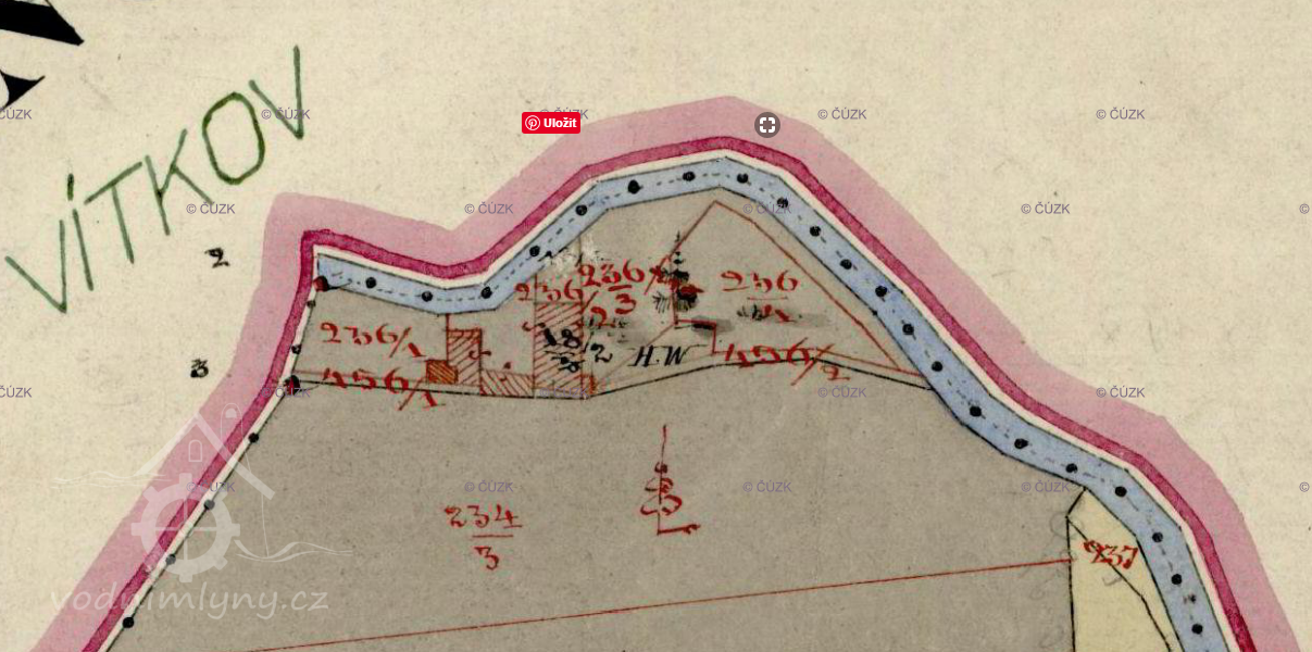 1715 Tereziánský katastr - mlýn o 2 kolech na nestálé vodě