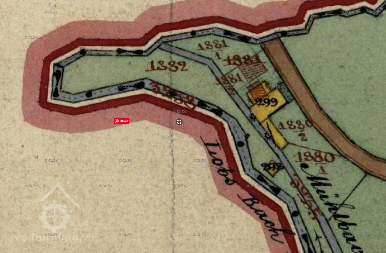Poslední dosud stojící mlýn na Lobezském potoce, doložený k roku 1715. Autentický je zejména velký sklep.