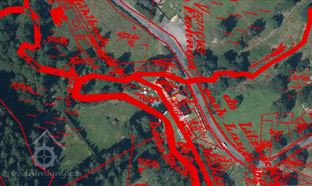 Popis1930: 1 kolo na svrchní, hltnost 0,14 m3/s, spád 3,8 m, výkon 4,5 HP