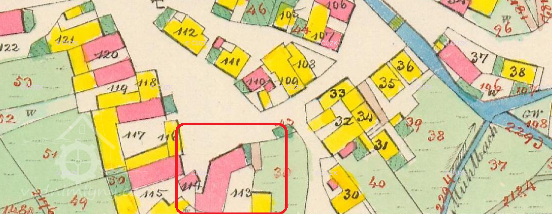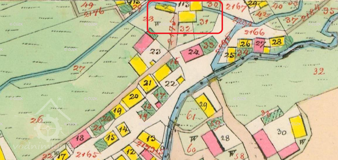 Popis1930: 1 kolo na svrchní vodu, hltnost 0,12 m3/s, spád 4,1 m, výkon 4,2 HP