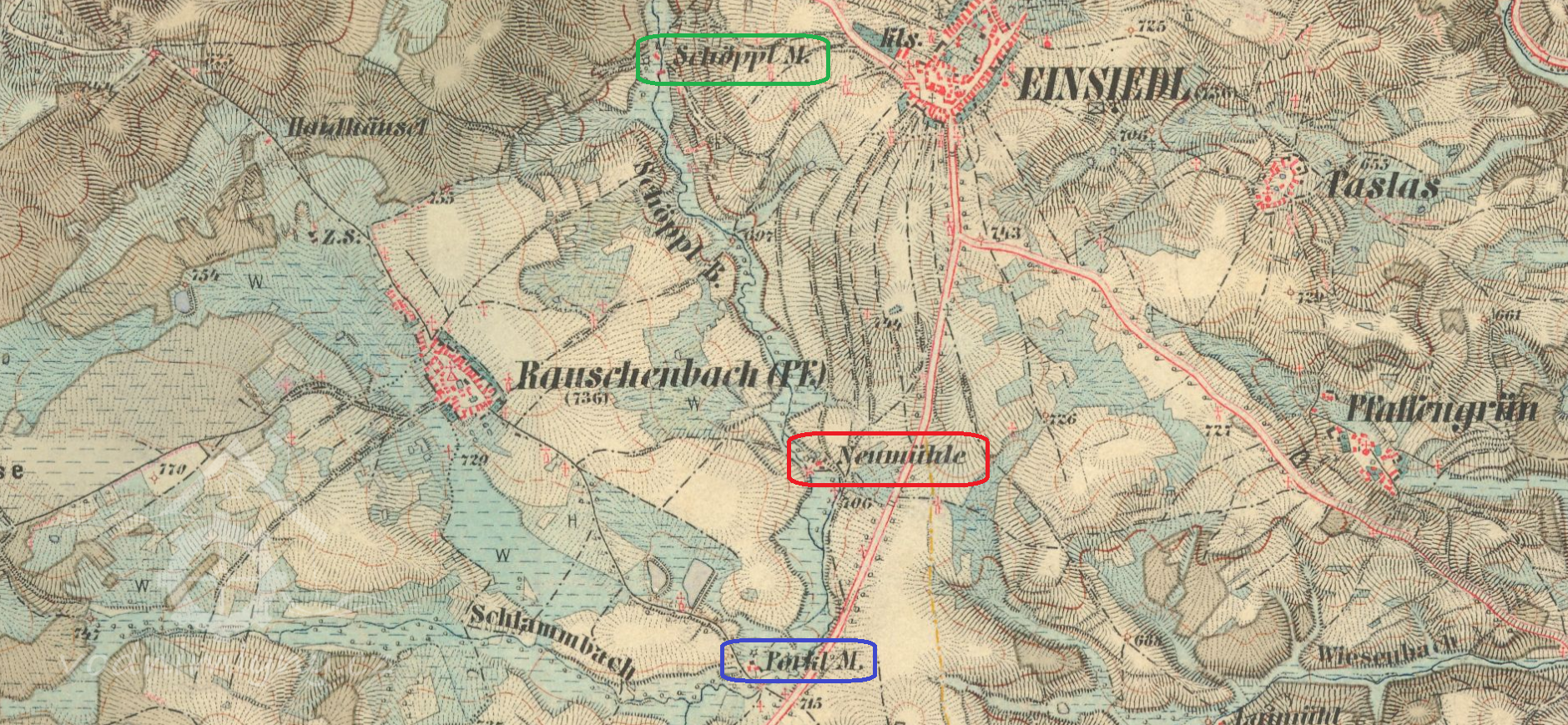 1785 (Josefský katastr) Kohlfurt Mühl
