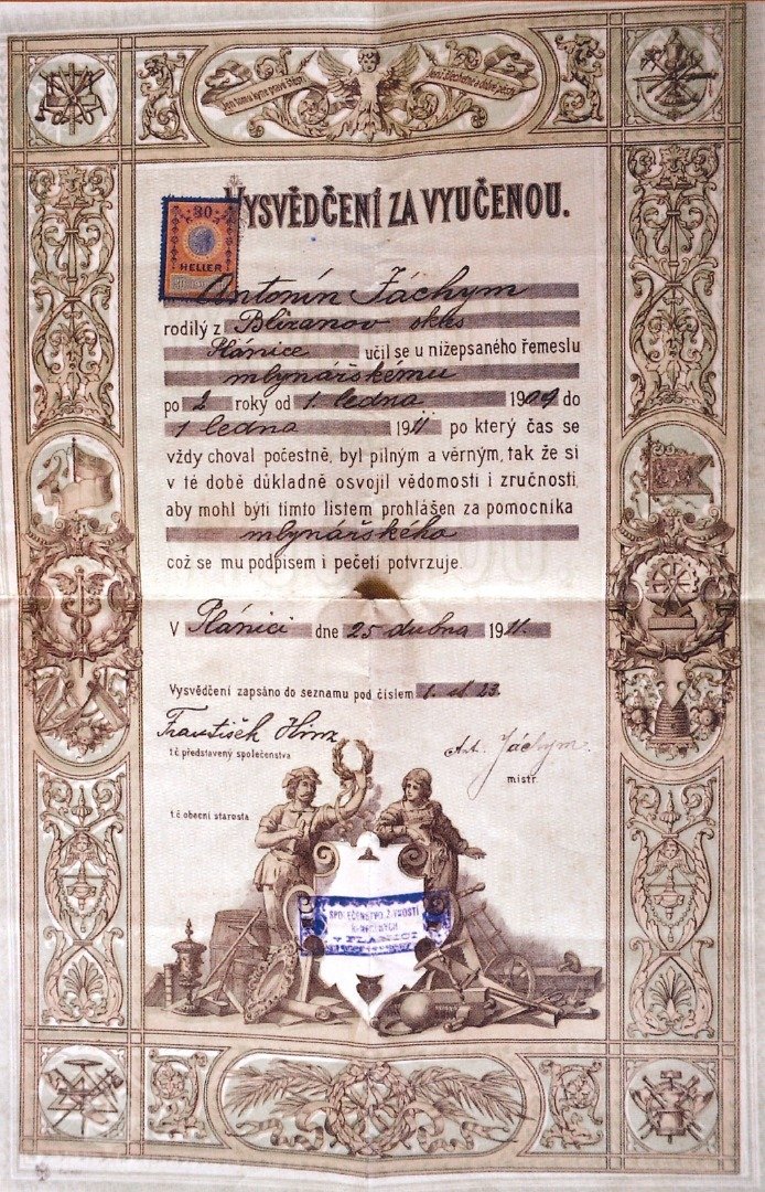 15.1.1883 zakoupili Antonín (*1856) a Anna Joachimovi (Jáchymovi). Antonín Jáchym však ještě další 4 roky pracuje jako stárek po okolních mlýnech.