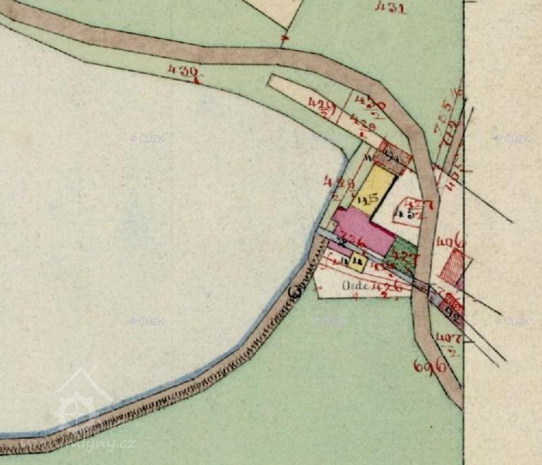 Mlýn je zakreslen již na mapě I. voj. mapování.