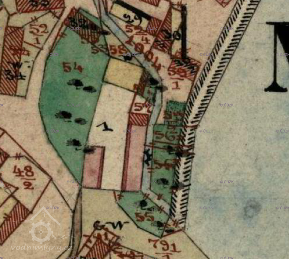 1755 poddanský mlýn o 1 kole na nestálé vodě, mlynář je ale "chudej a nedělá"