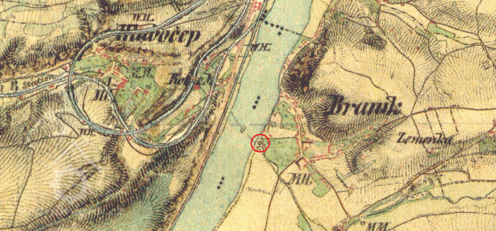 400 m západně od kostela sv. Prokopa v Braníku