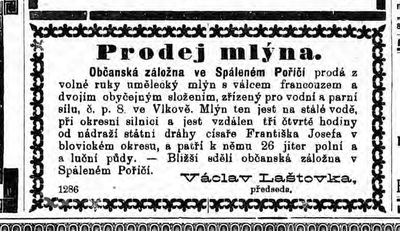 - Vznik mlynářské živnosti