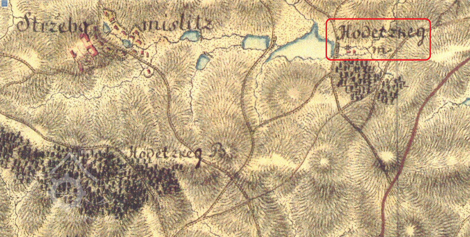 29.8.1743 obnoven kontrakt Václava Sedmihradského, ke mlýnu náleží 5 kusů polí celkem 6 str. 2 1/2 věrt. (1 strych Za lednicí, 2 str. 1 věrt, Za lukou, 1 1/2 věrt Pod mlýnem, 2 str. Vod mostku, 1 str. V jezeřích). Povinně přimlýněny Horažďovická Lhota a Třebomyslice. Mleče z jiných míst nesmí bez vážné příčiny přijímat.