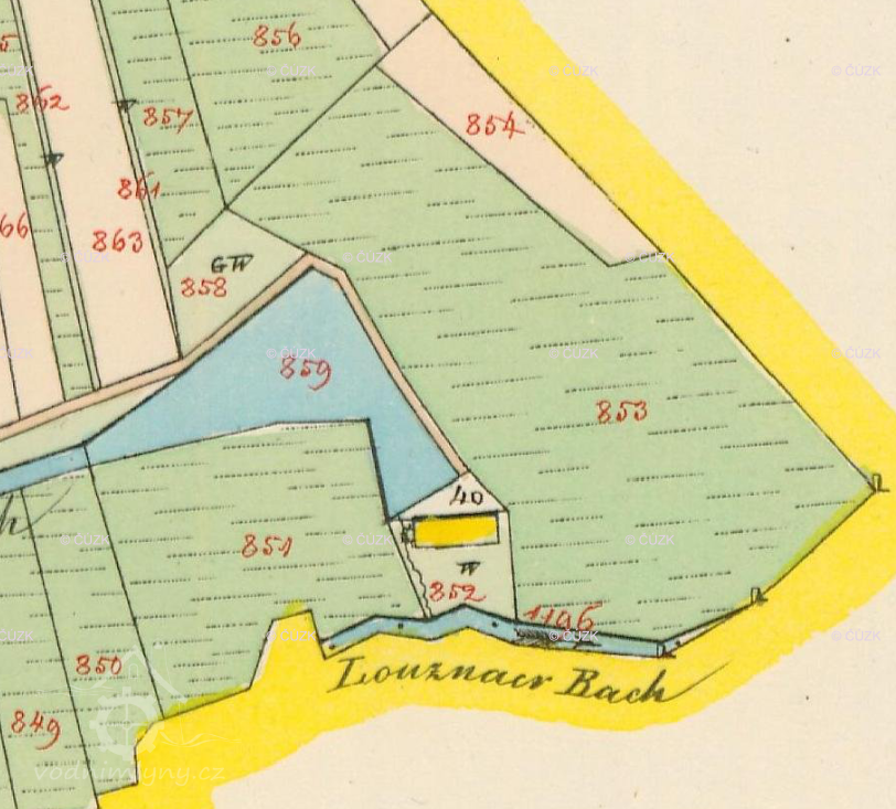 Od mlýna voda odtékala do rybníka plánického velkostatku.