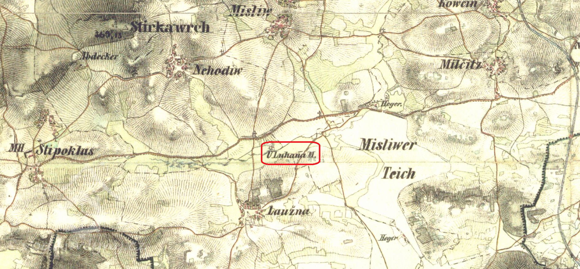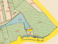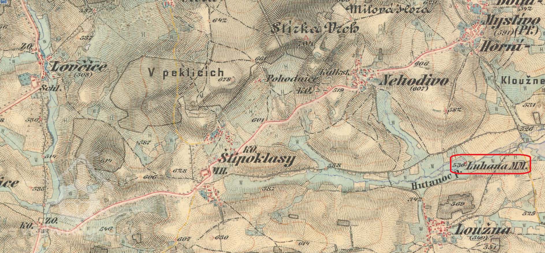 Mlýn na hranicích katastru Nehodivi a Loužné, jeho situace se dnes radikálně změnila, původně totiž ležel na jižní straně akumulační nádrže, v 60. letech však byla na jeho západní straně zbudována hráz velkého rybníka a mlýn pak sloužil jako skladiště krmiva pro ryby.