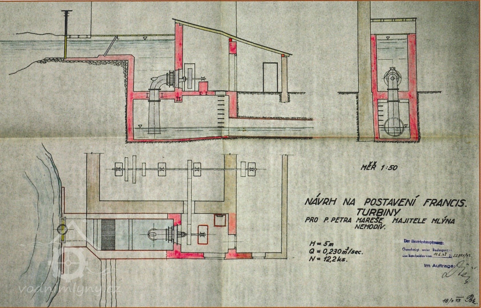 1943 Petr Mareš žádá o povolení ku zřízení turbíny, schváleno