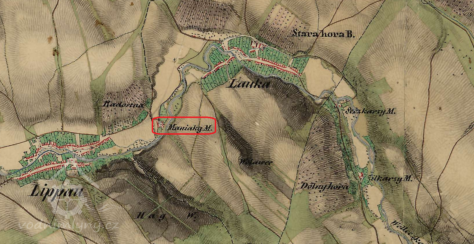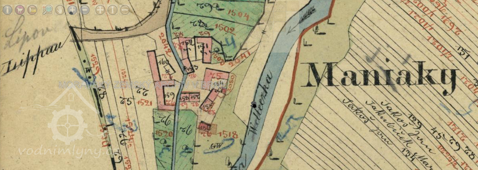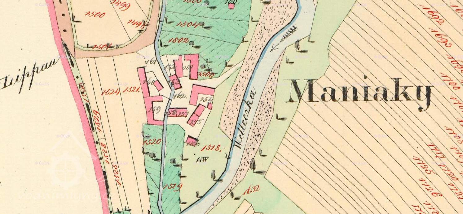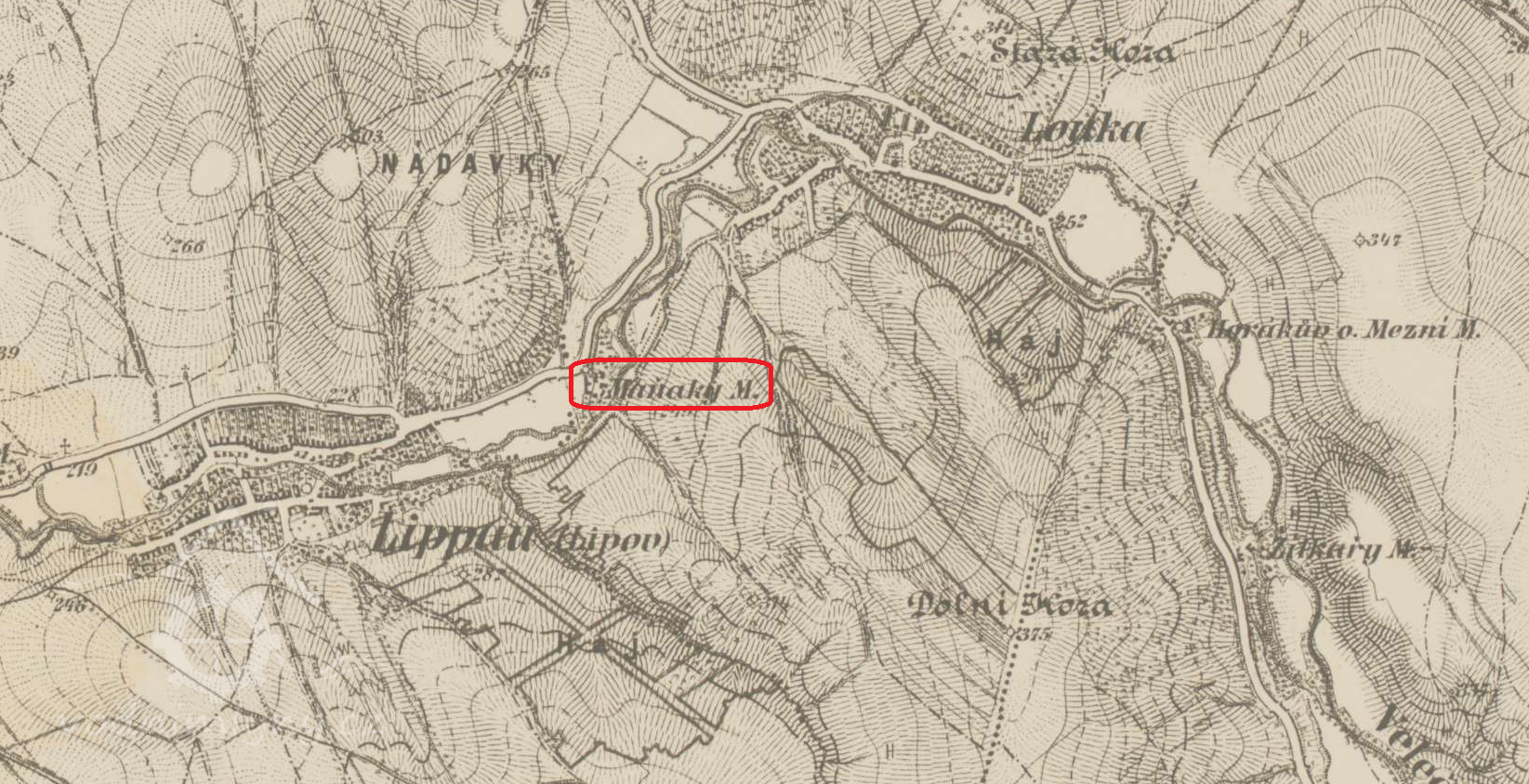 Budova mlýna stála jižně od Louky a mlýn ani nejbližší budovy již nestojí. (RŠ)