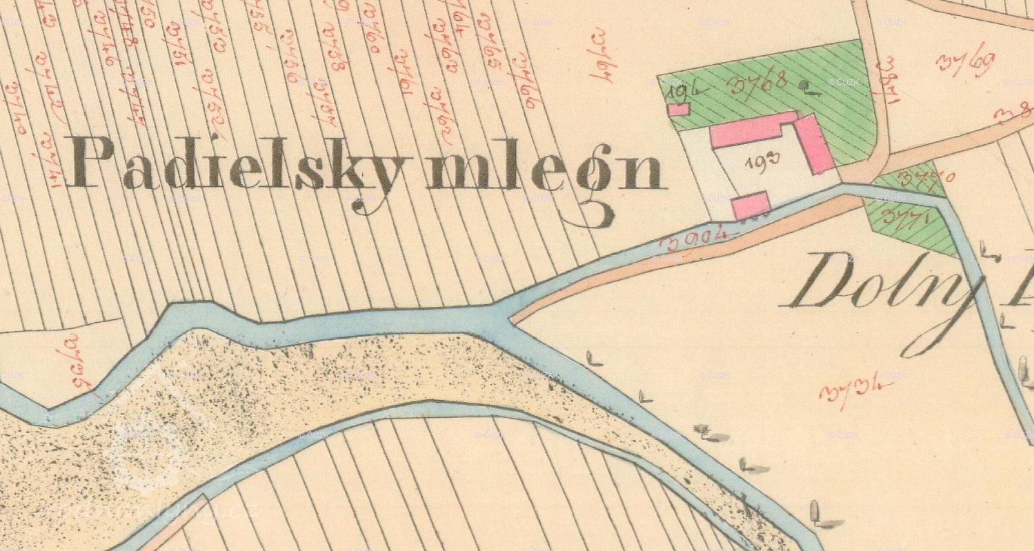 1930: 1 kolo na svrchní vodu, hltnost 0,22 m3/s, spád 5,3 m, výkon 9,5 HP