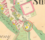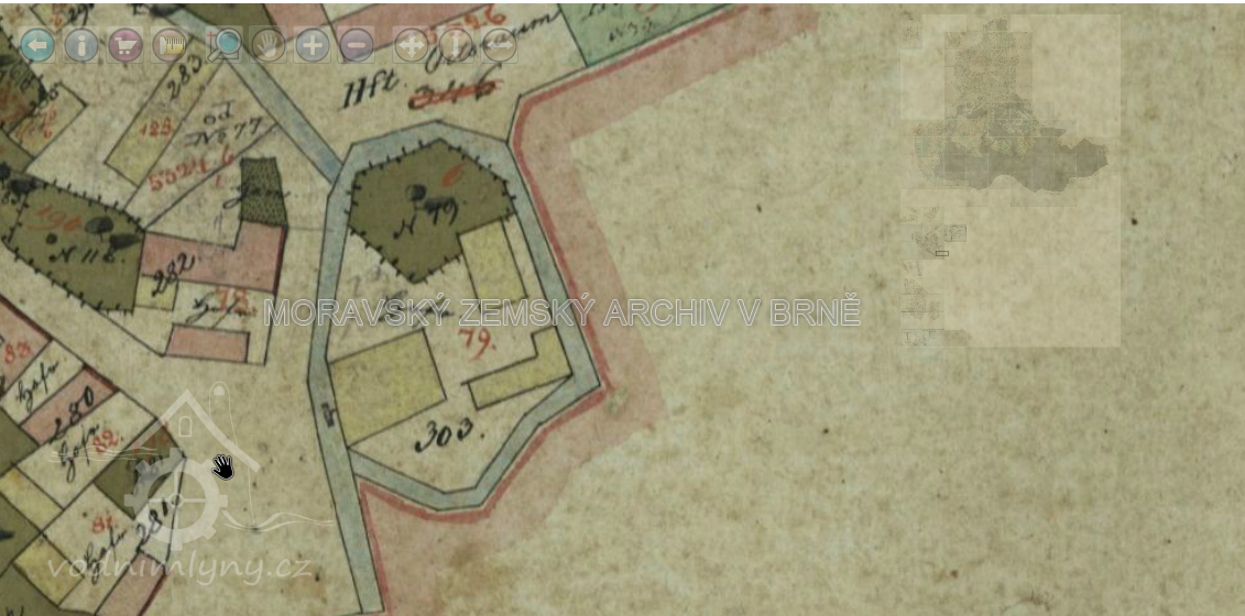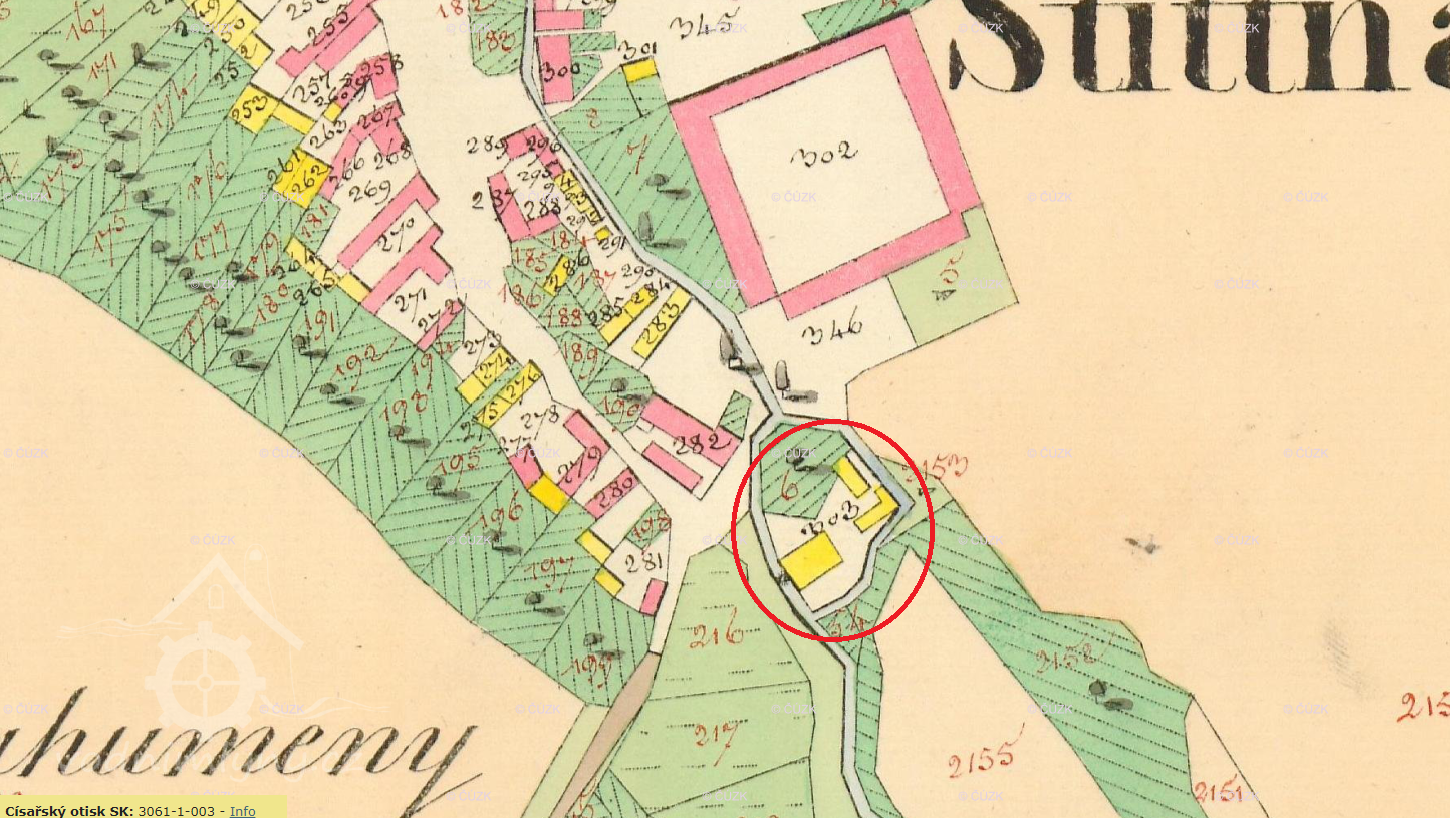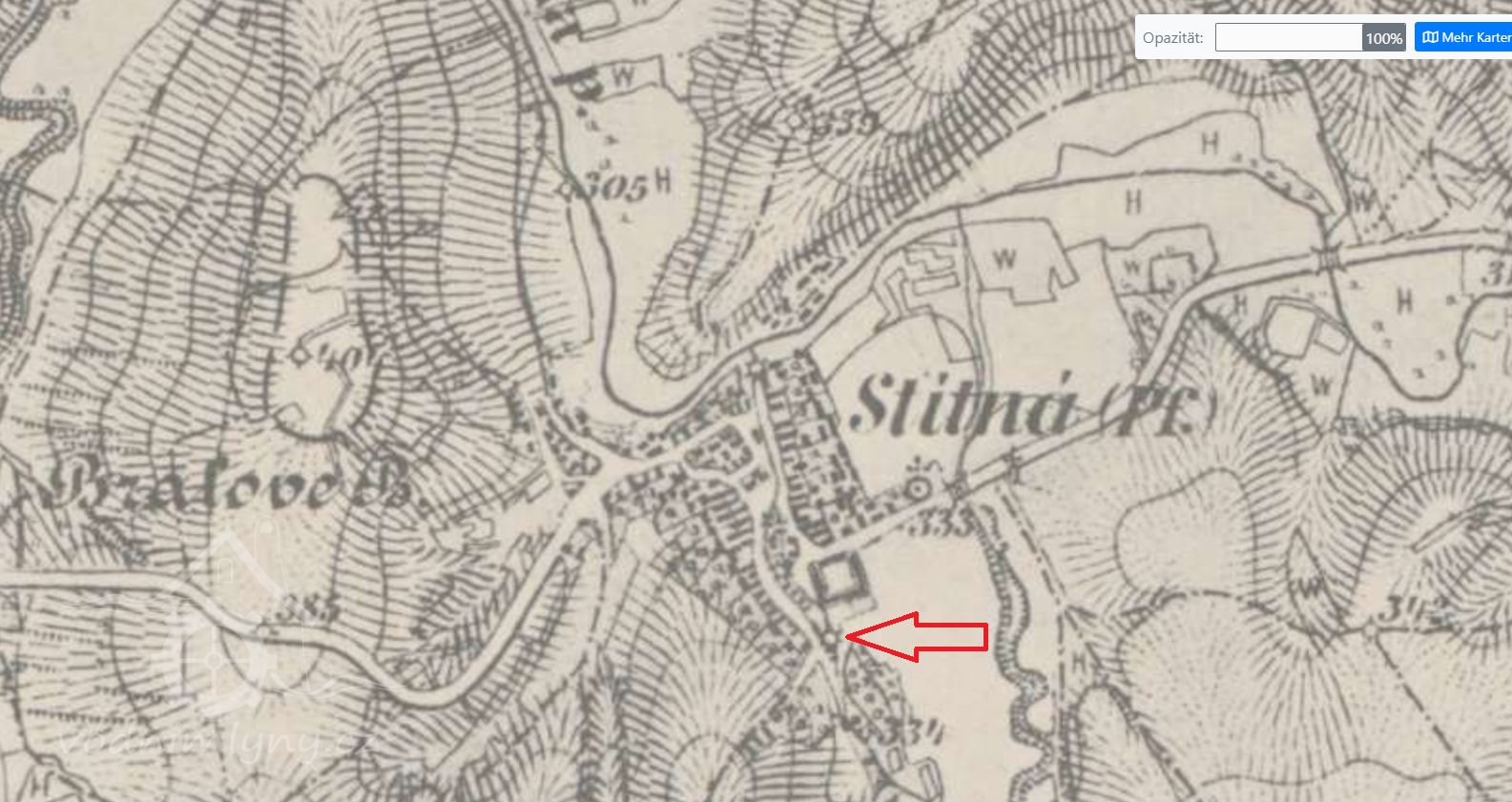 Menšíí mlýn původně na ostrůvku jižně od panského dvora ve Štítné. Původní čp. 79 následně přeneseno na výše položený Liškův mlýn (dnes pilu).