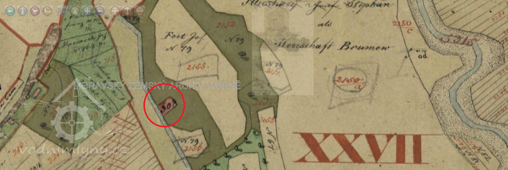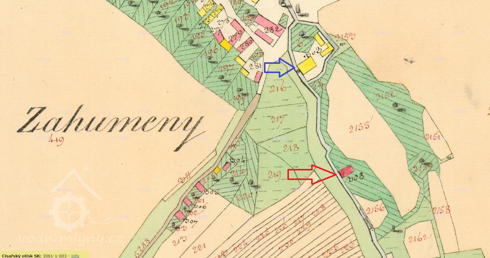 Popis1930: 1 kolo na svrchní vodu, hltnost 0,155 m3/s, spád 4,5 m, výkon 6 HP