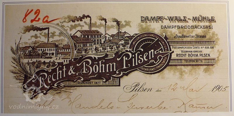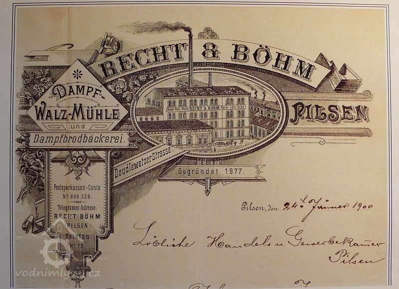 1877 zakoupila firma Recht & Böhm, provozuje pod firmou První válcový mlýn v Plzni Recht & Böhm, zřídila zde rovněž pekárnu