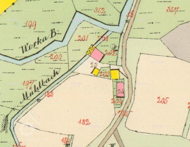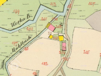 Mlýn na samotě pod vsí, vlastní mlýnice v 50. letech 20. stol. zbořena, vedlejší budovy přestavěny na rekreační objekty..