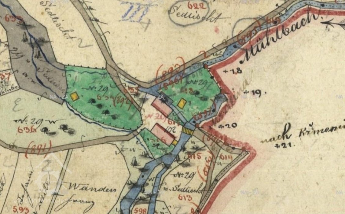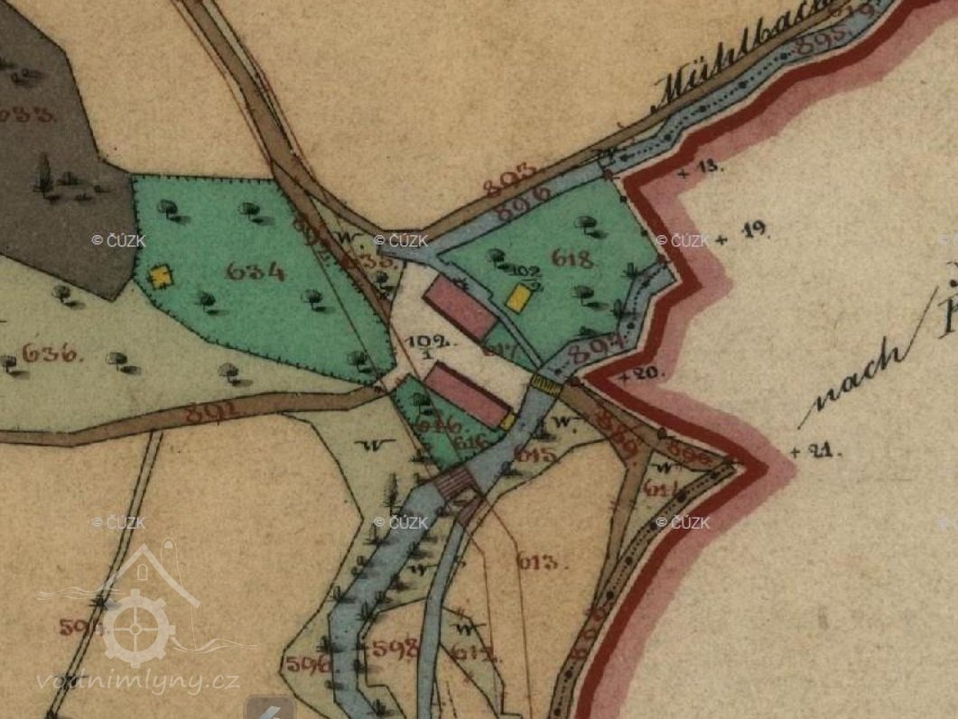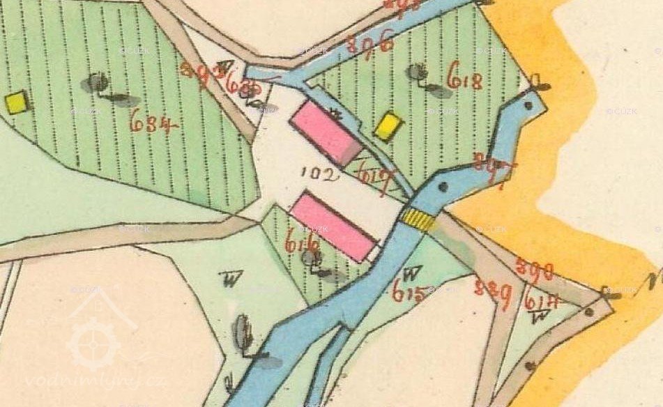PopisV roce 1930 měl mlýn 1 kolo na vrchní vodu, hltnost 0,079 m3/s, spád 6,2 m, výkon 4 HP.