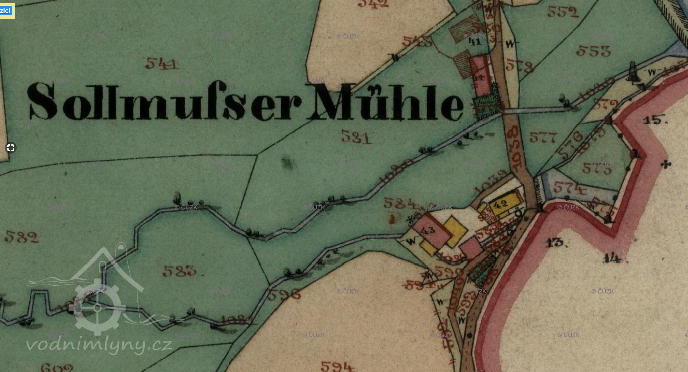 Popis1930: 1 kolo na svrchní vodu, hltnost 0,075 m3/s, spád 3,94 m, výkon 2,36 HP