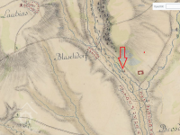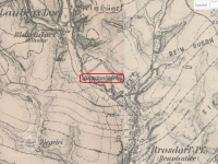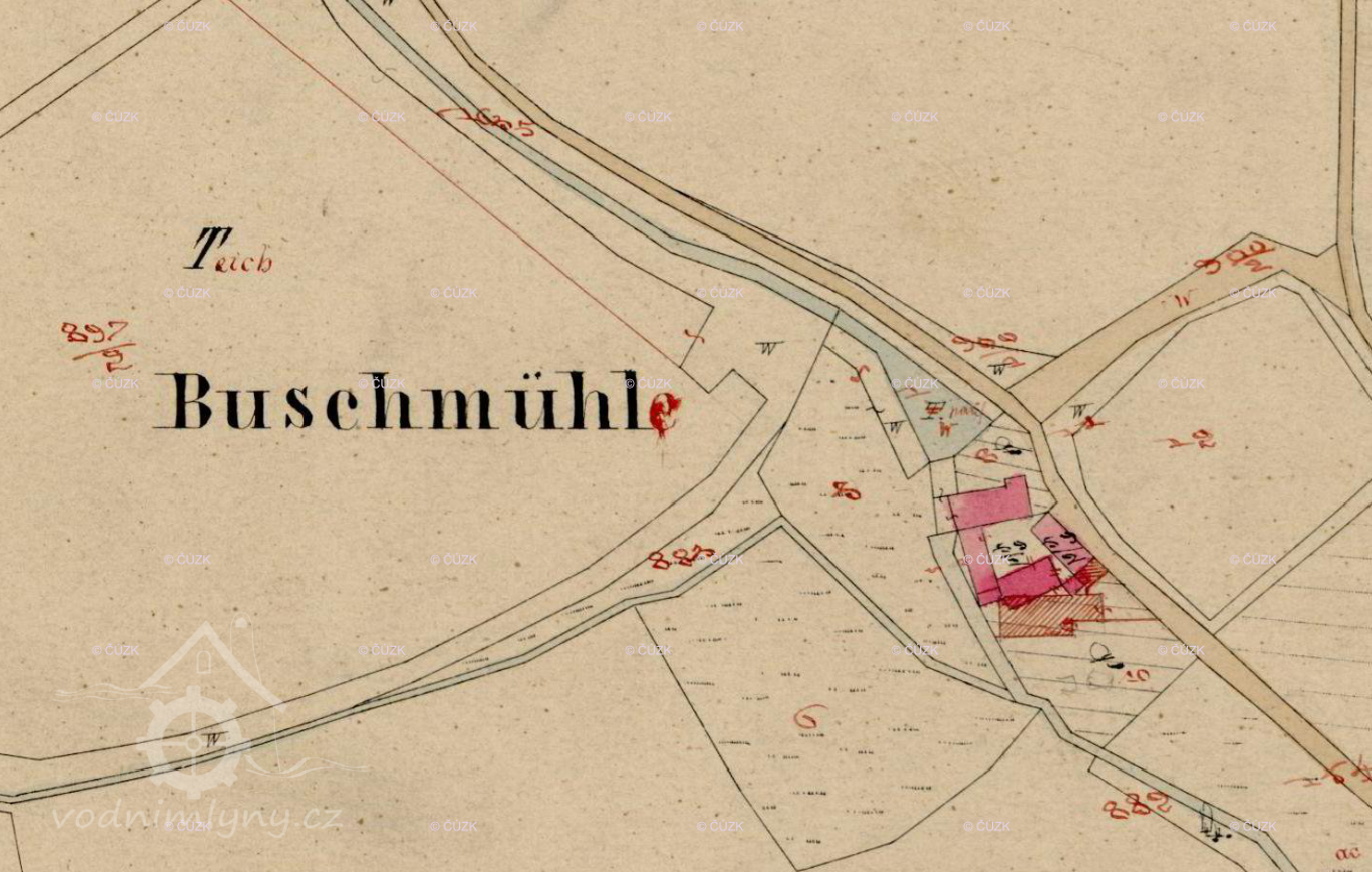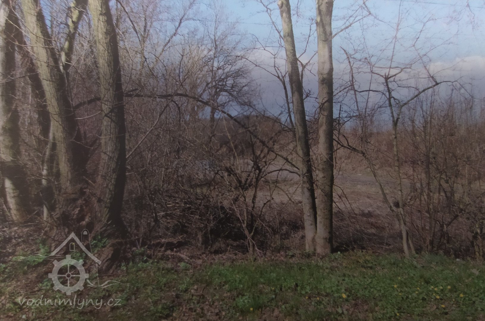 Náhon a akumulační nádrž dnes zasypány, nad mlýnem stále Dolní Bravantický rybník (2,8 ha)