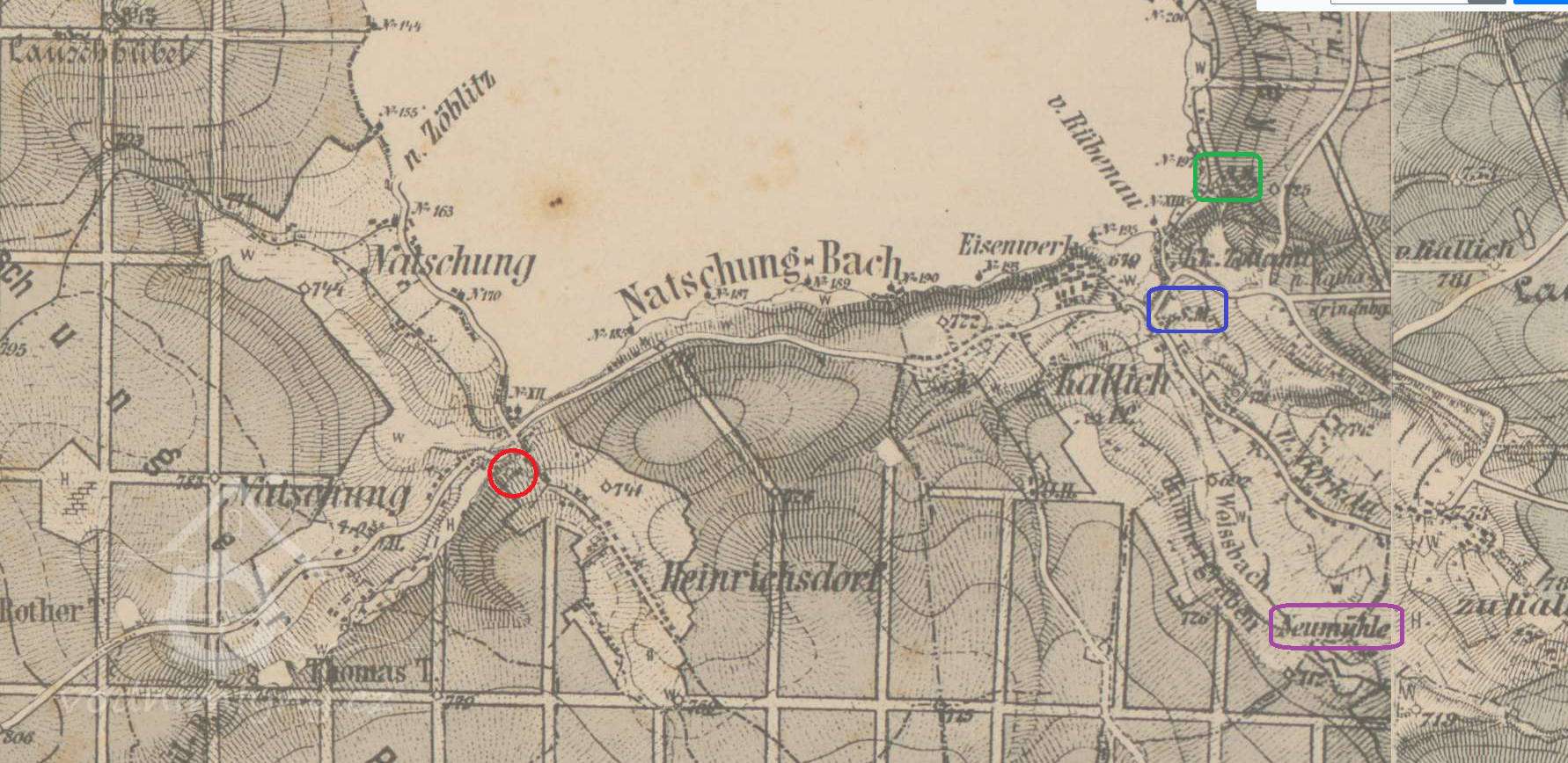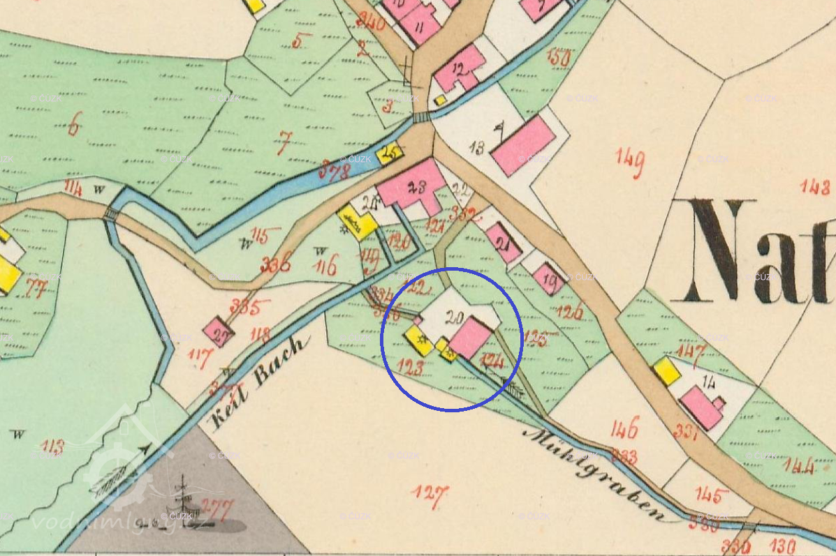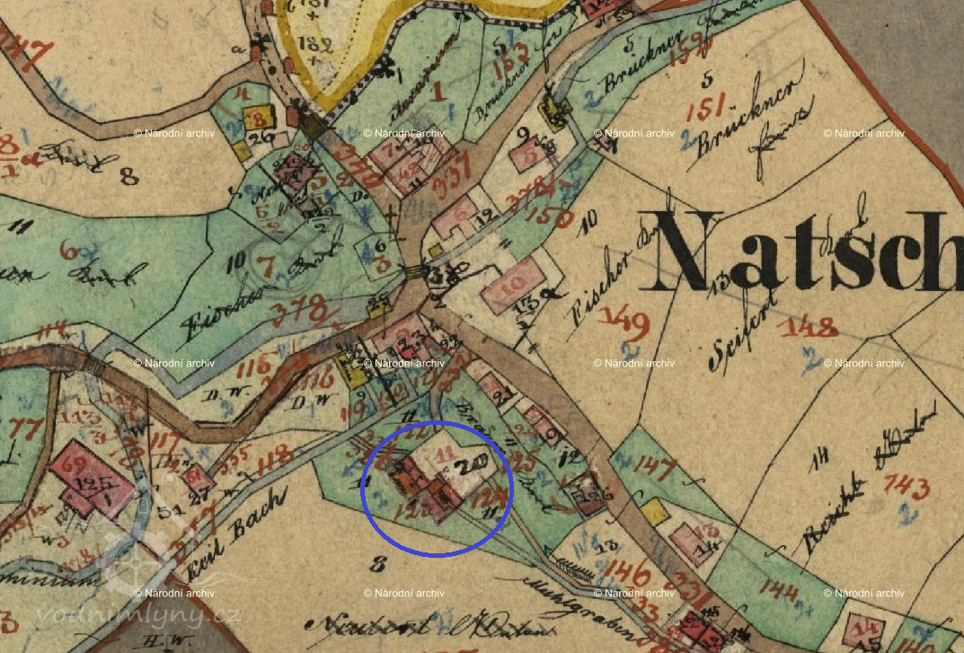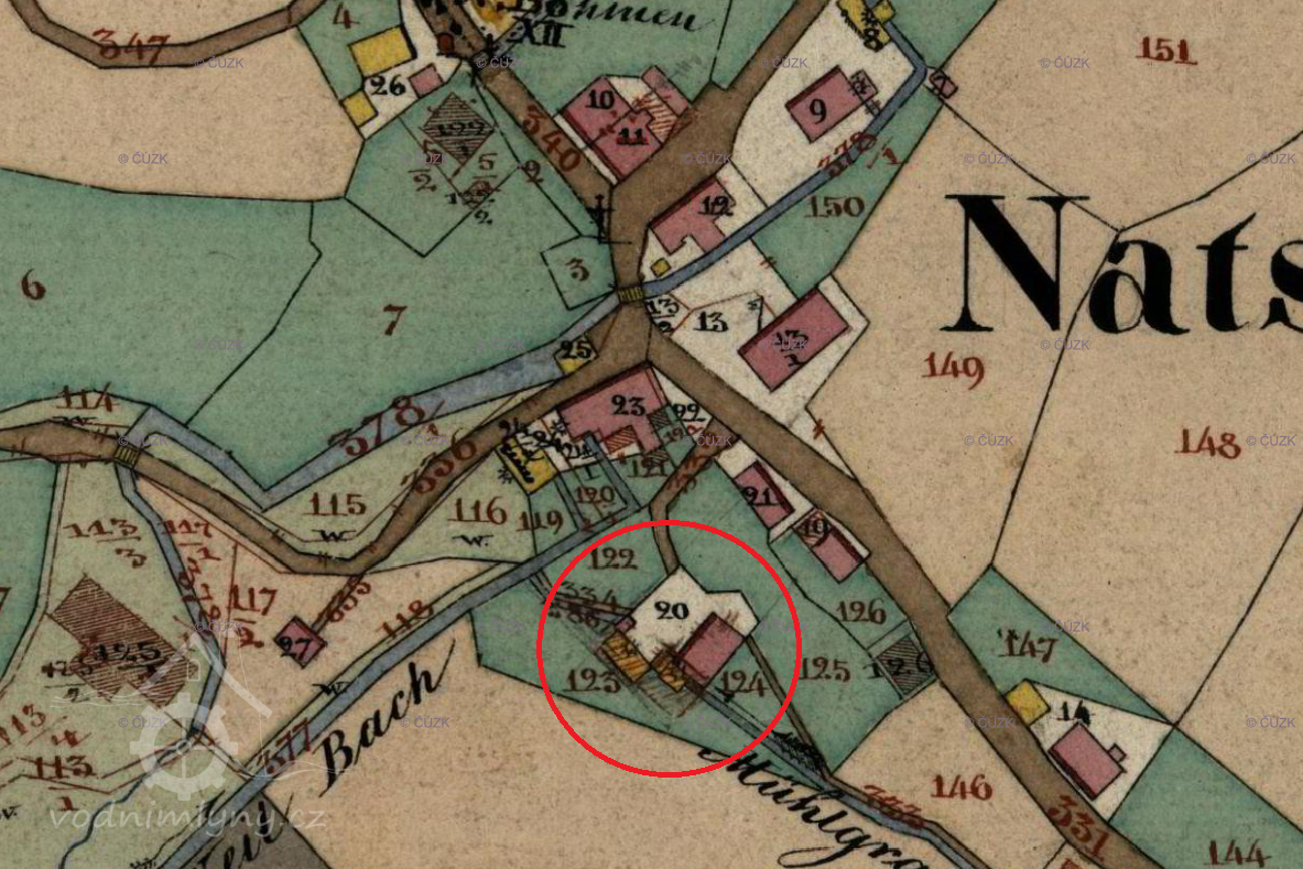 Zaniklý mlýn poblíž načetínského zámku, na jeho místě dnes stojí chatka.