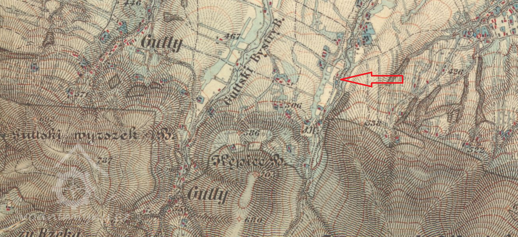 2,2 km východně od evangelického kostela v Gutech
