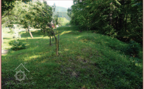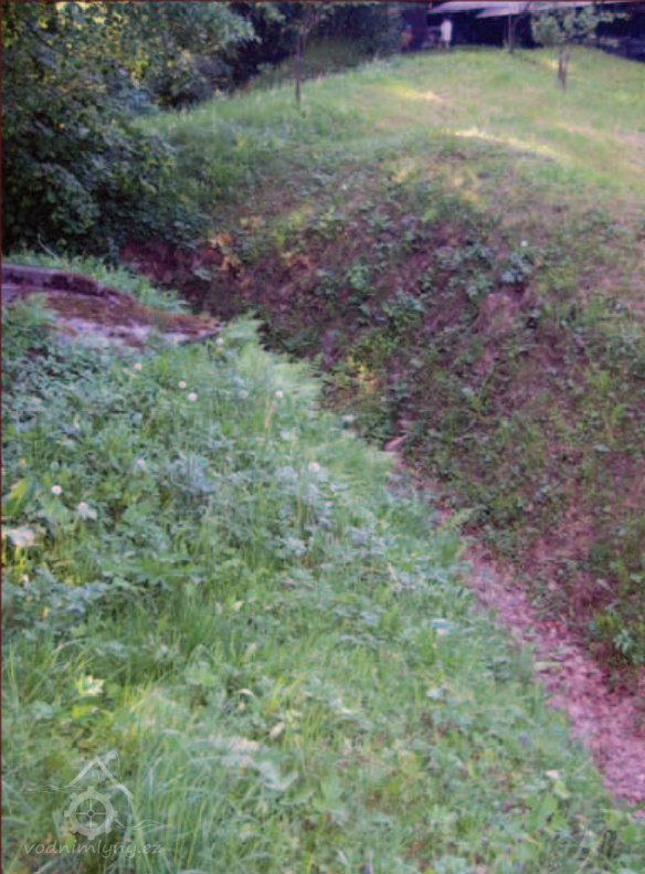 Je zachována část hmoty koruny valu, který nesl náhon (až ke mlýnu pak v dřevěném korytu). Nad objektem zachován tvarem malý rybníček (stav), nyní vyschlý, ale se zachovalým valem obvodové hráze.