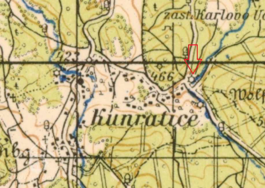 Dle německého zdroje „Adressbuch für den politischen Bezirk Schluckenau“ bylo čp. 1 v Kunraticích registrováno jako parní pila, majitelem byl Josef Ludwig Kümpfel.