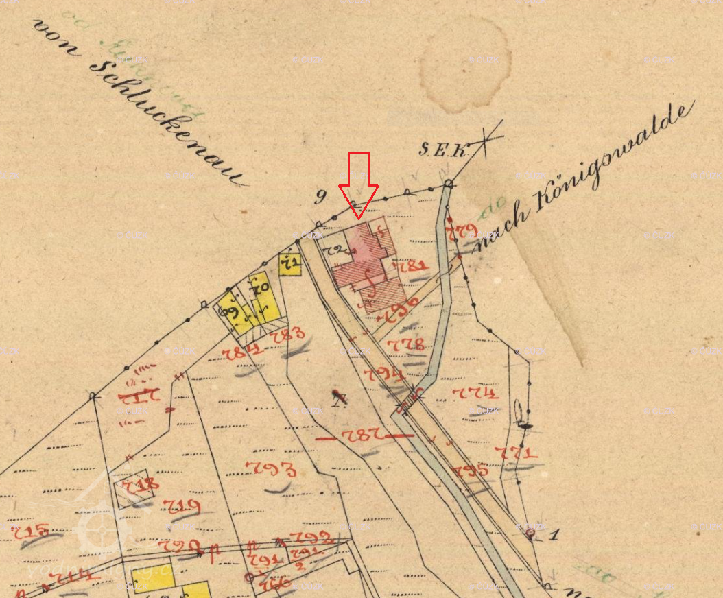 V roce 1786 zde byli zapsáni mlynář Joseph Kümpfel (63) a jeho manželka Johanna (47), ke konci století, v roce 1798 zde hospodařila sama vdova Johanna Kümpfel.