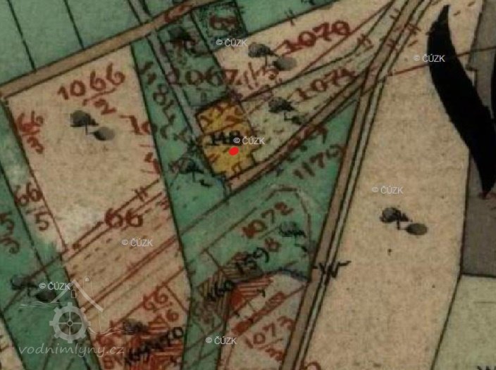 Zbořený mlýn, stál na území nynějšího dvora domu čp. 556, částečně zasahoval do prostoru nynějšího železničního náspu. Byl zbořen při stavbě železnice v roce 1871.