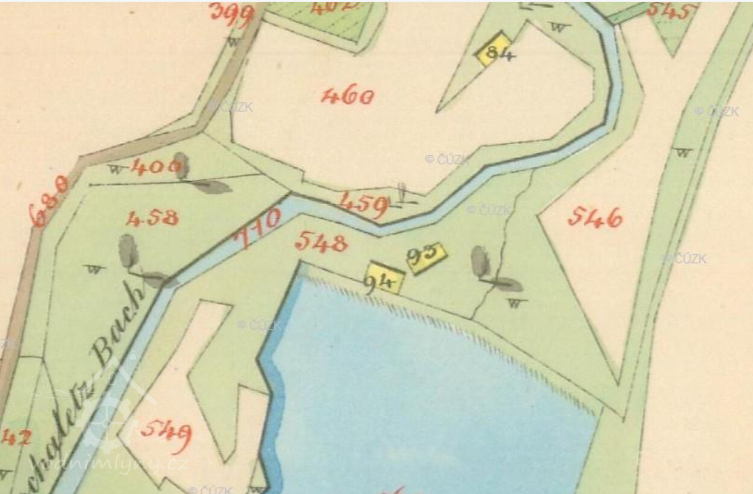 Zaniklý mlýn pod dosud existujícím rybníkem. Mlýniště dnes leží uprostřed bažiny.