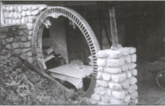 V přístavku zazděno původní litinové paleční kolo o prům. 140 cm, složené ze dvou půlkruhových litinových odlitků.