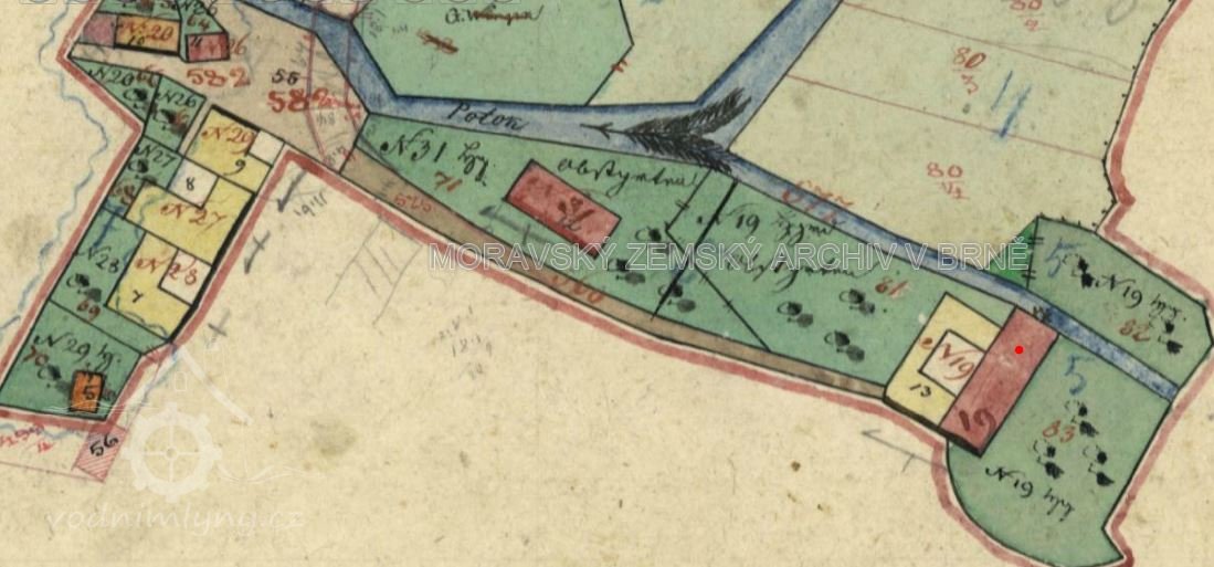Popis1930: 1 kolo na svrchní vodu, hltnost 0,16 m3/s, spád 3,4 m, výkon 4,4 HP