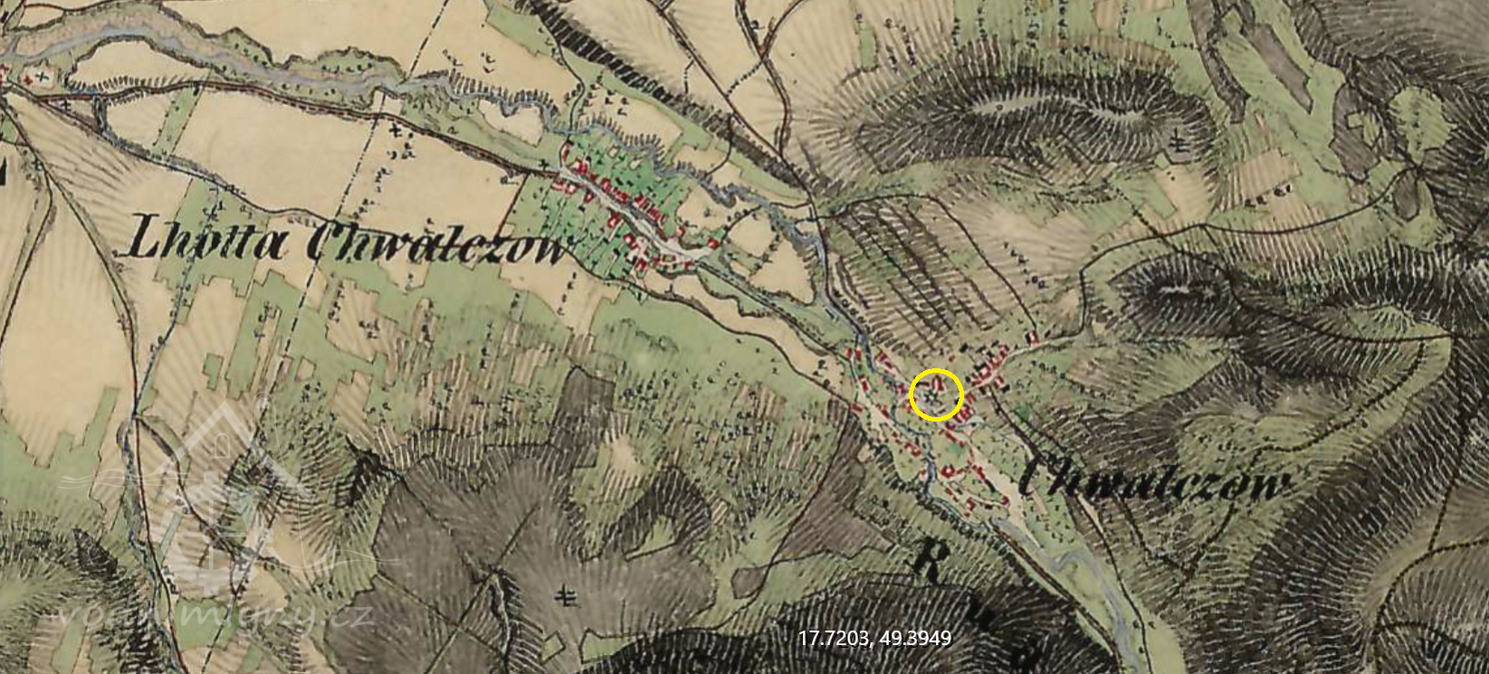 1675 Lánový rejstřík: ve Lhotě Chvalčově 2 domkáři bez polí se dvěma mlýny, každý o jednom složení