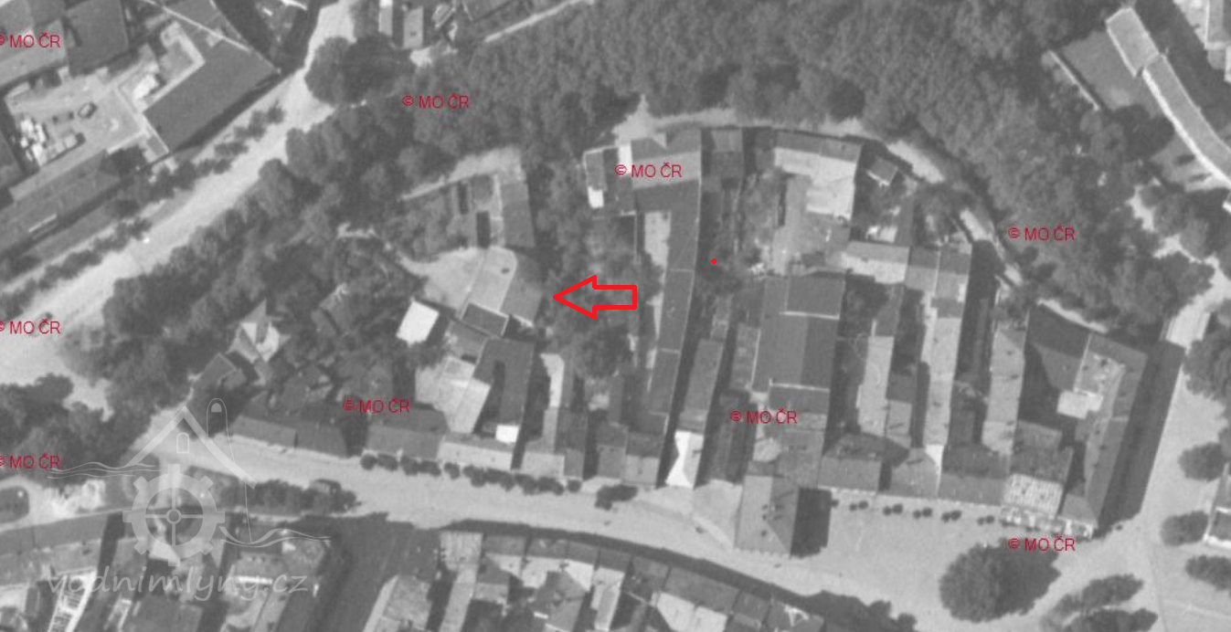 Mlýn pod náměstím, zbořený před rokem 1989.
