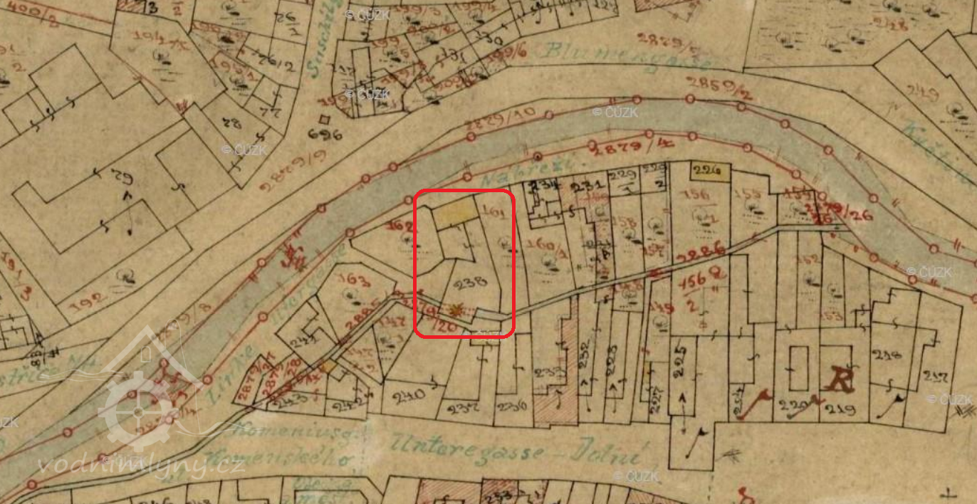 1649 Václav Eusebius kníže z Lobkovic dal sepsat urbář panství bystřického - uveden mlýn v Dolní ulici