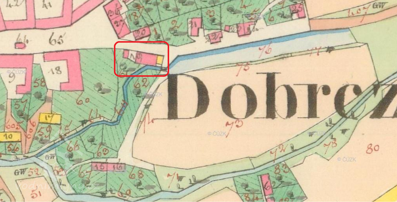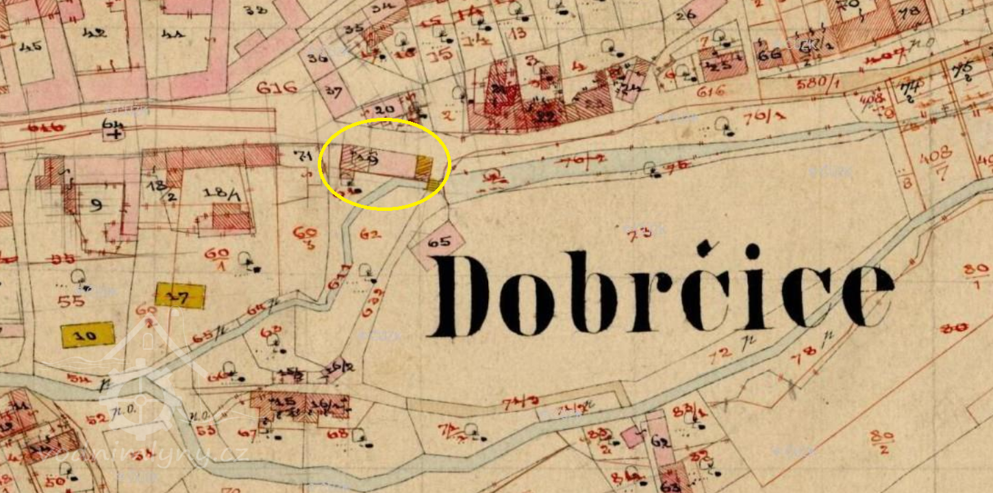 Náhon nad mlýnem rozšířen, čímž plnil i funkci zástavy pro nadržení vody na přerušovaný pohon mlýna.