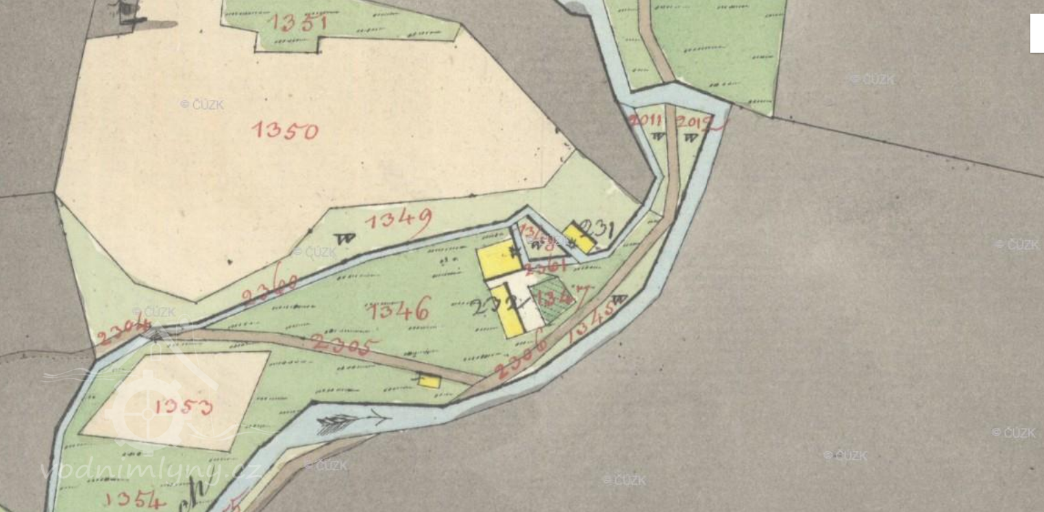 1834 na Juhyni v Rajnochovicích 4 mlýny a 7 pil. Na II. vojenském mapování jako pila.