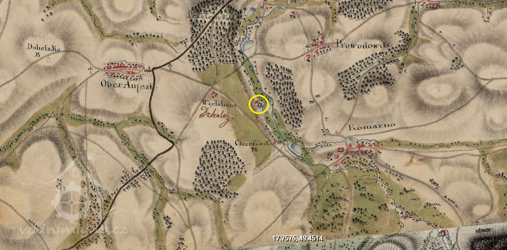 1775 postaven nový splav Hamerka pod obcí Komárno