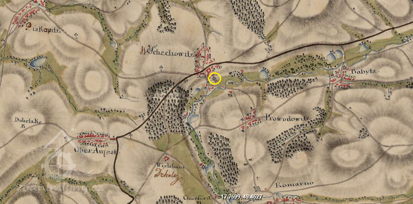 1775 postaven nový splav Hamerka pod obcí Komárno