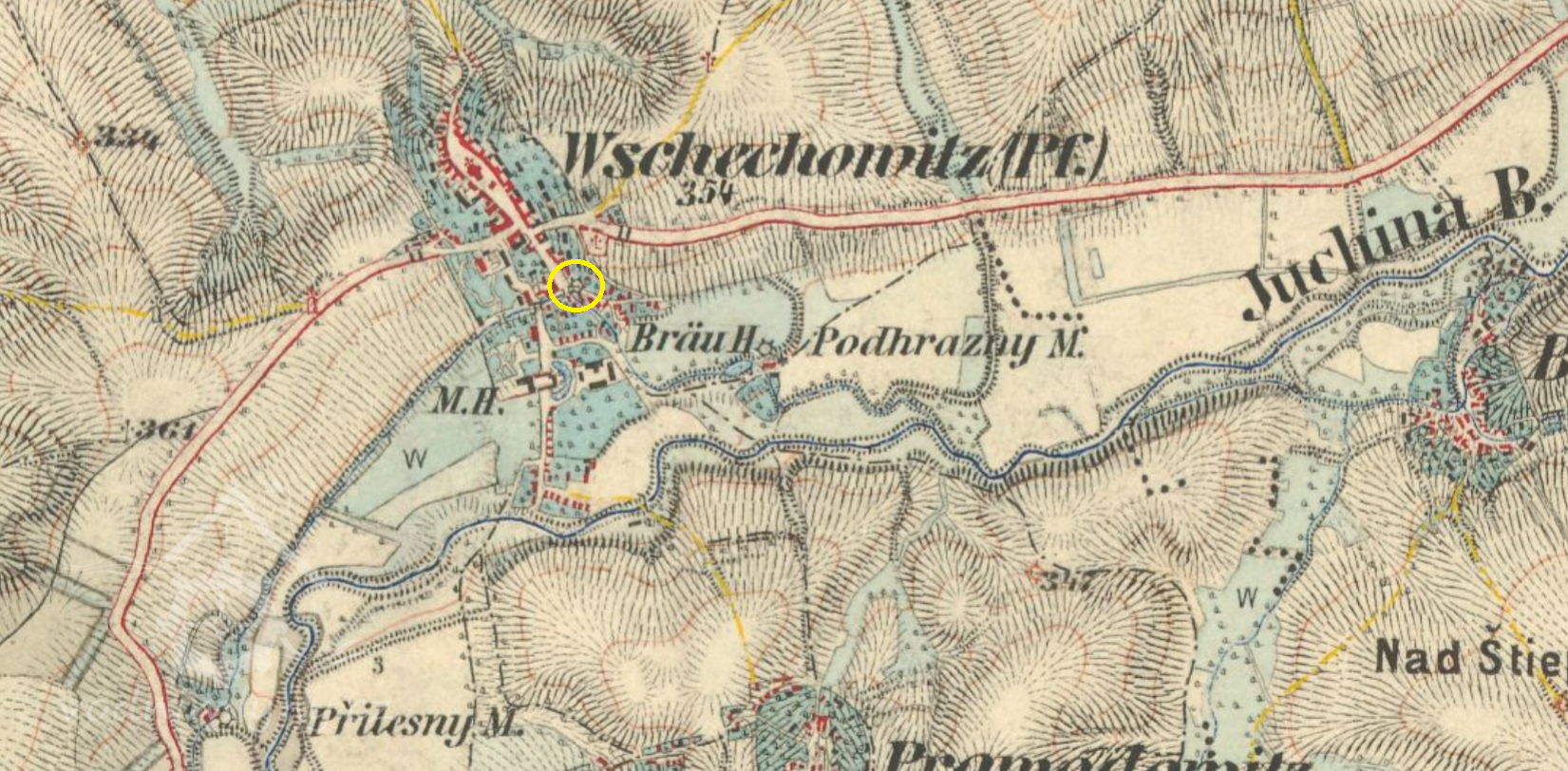 350 m jv od kostela Nejsv. Trojice ve Všechovicích