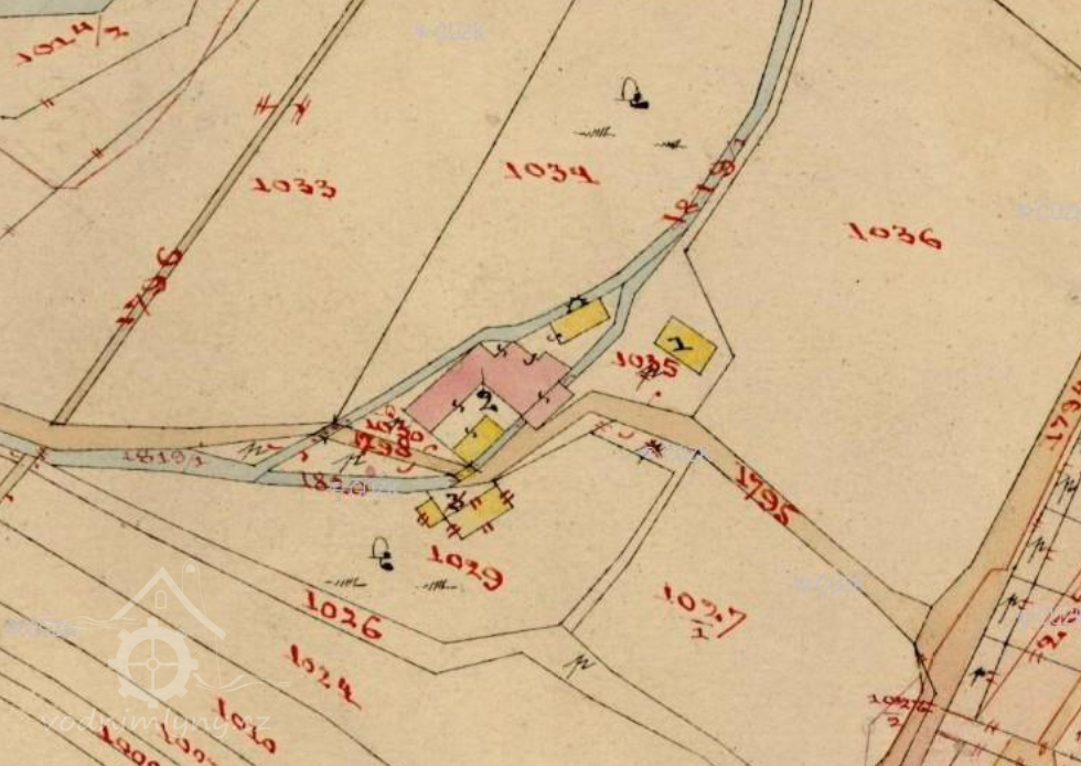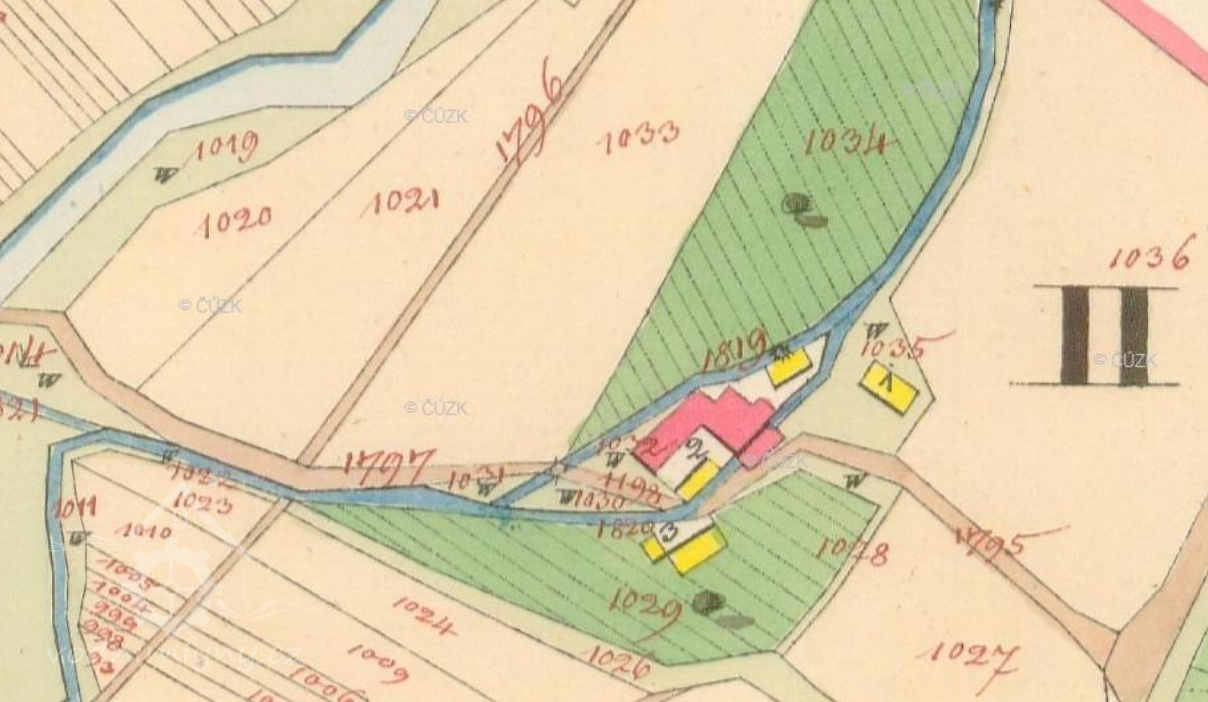 Mlýn na samotě, dosud zachovaný v základech dnešní budovy.