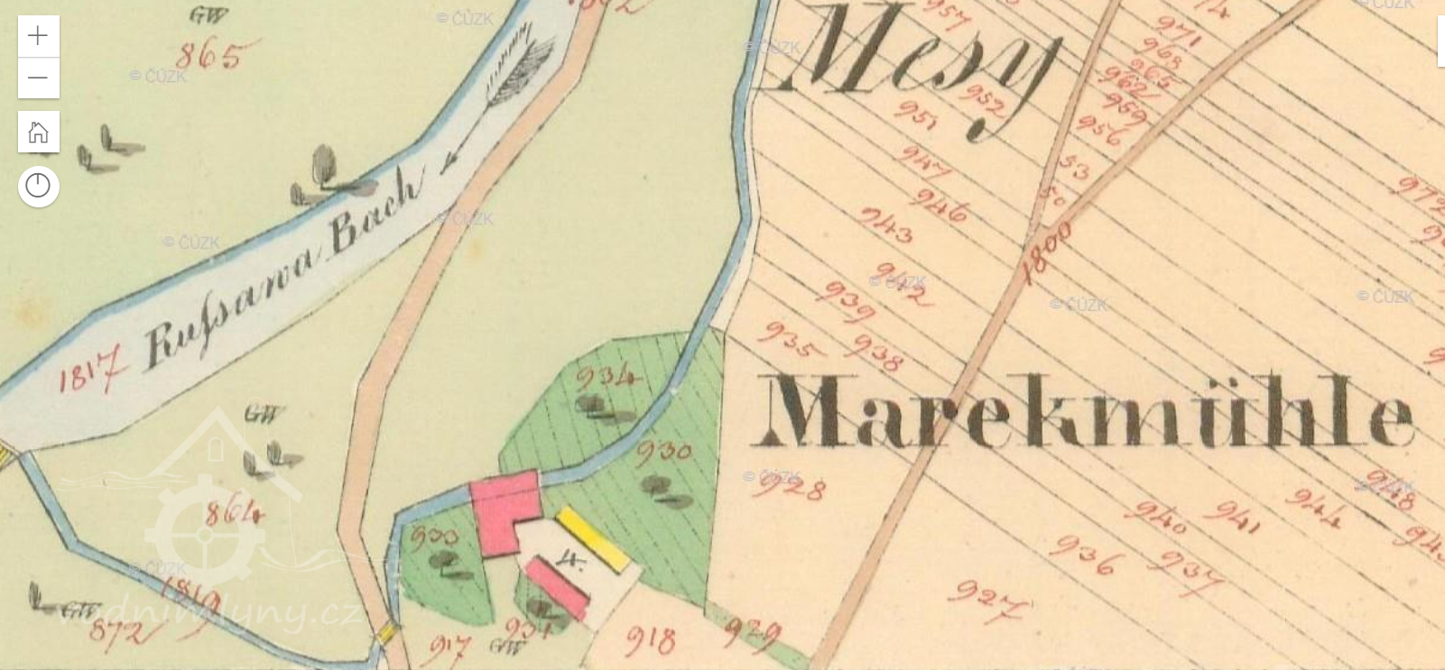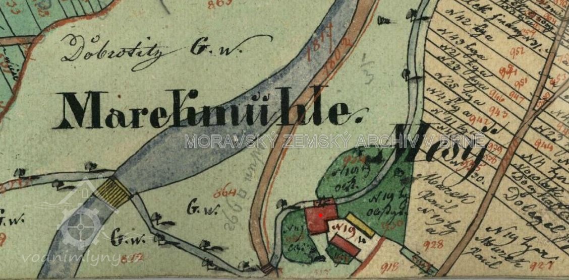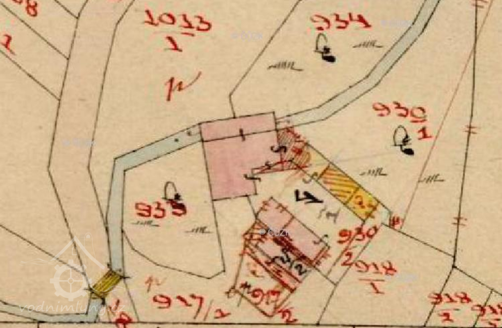 Popis1930: 1 kolo na svrchní vodu, hltnost 0,17 m3/s, spád 4,1 m, výkon 6 HP