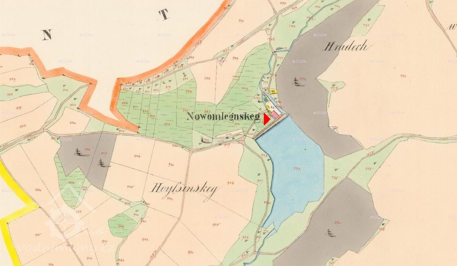 Císařský povinný otisk, výřez, 1843, © viz archivnimapy.cuzk.cz
