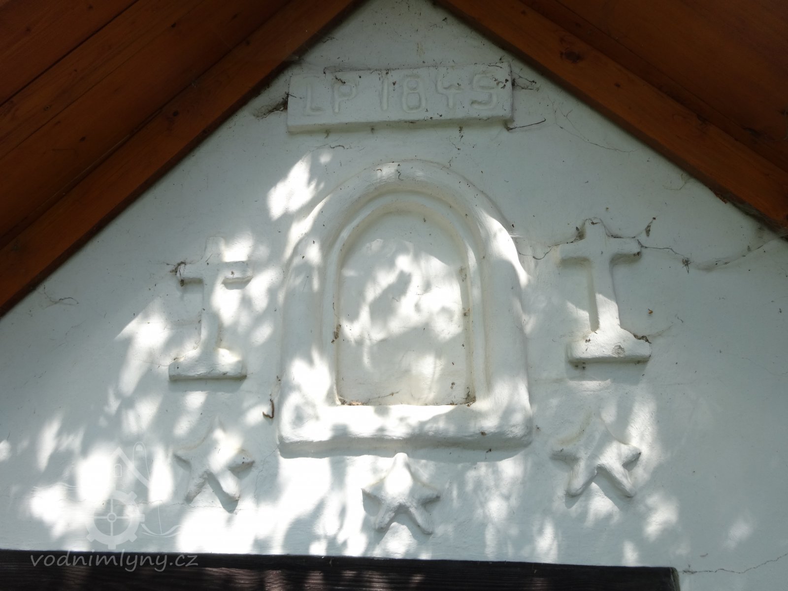 Pohled na šít budovy pily z datem výstavby z hráze., 18.7.2016, © pepino
