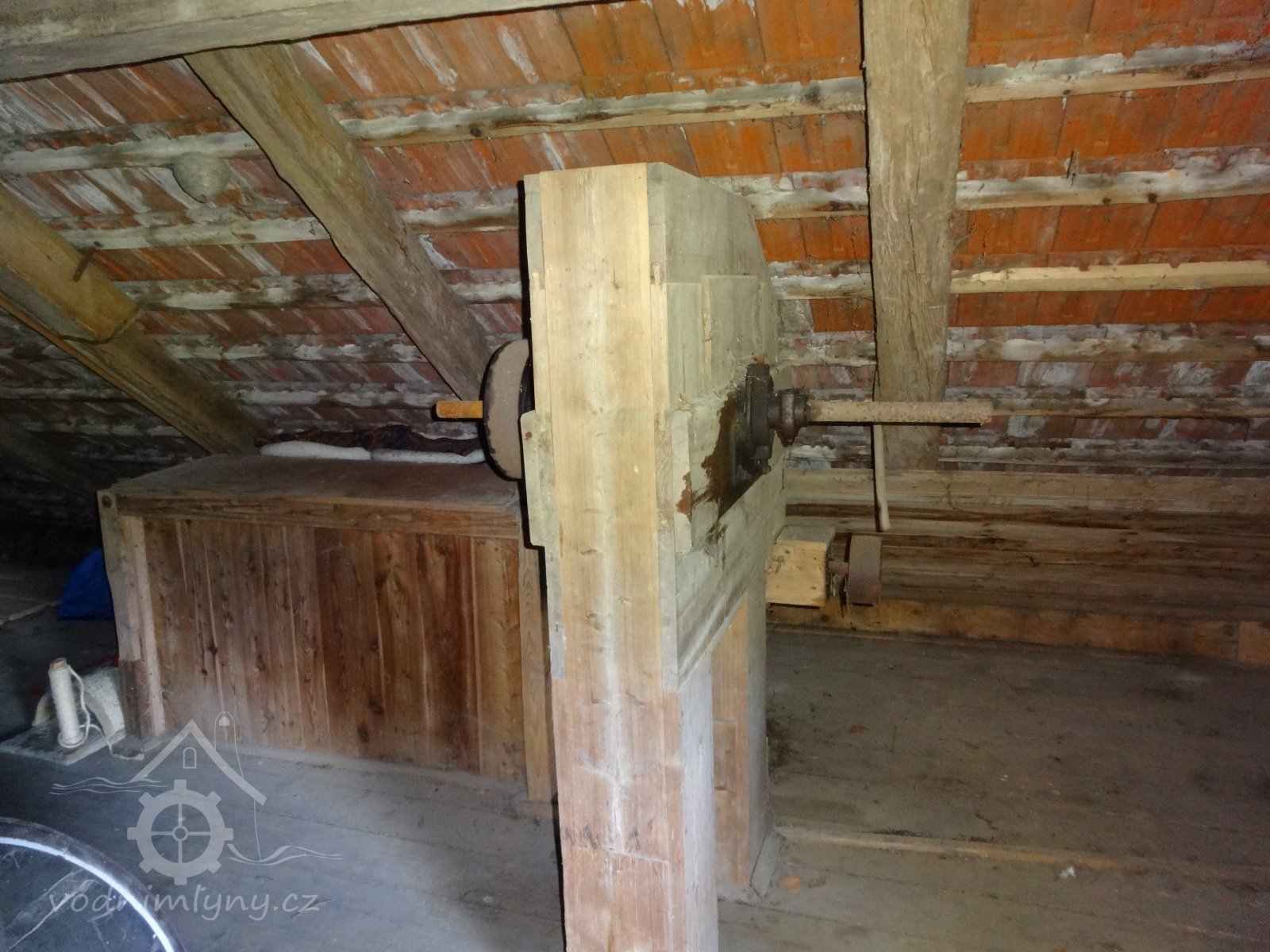 Pohled ze dvora., 18.7.2016, © pepino, (Prvky na obrázku: transmise, řemenice, převody)