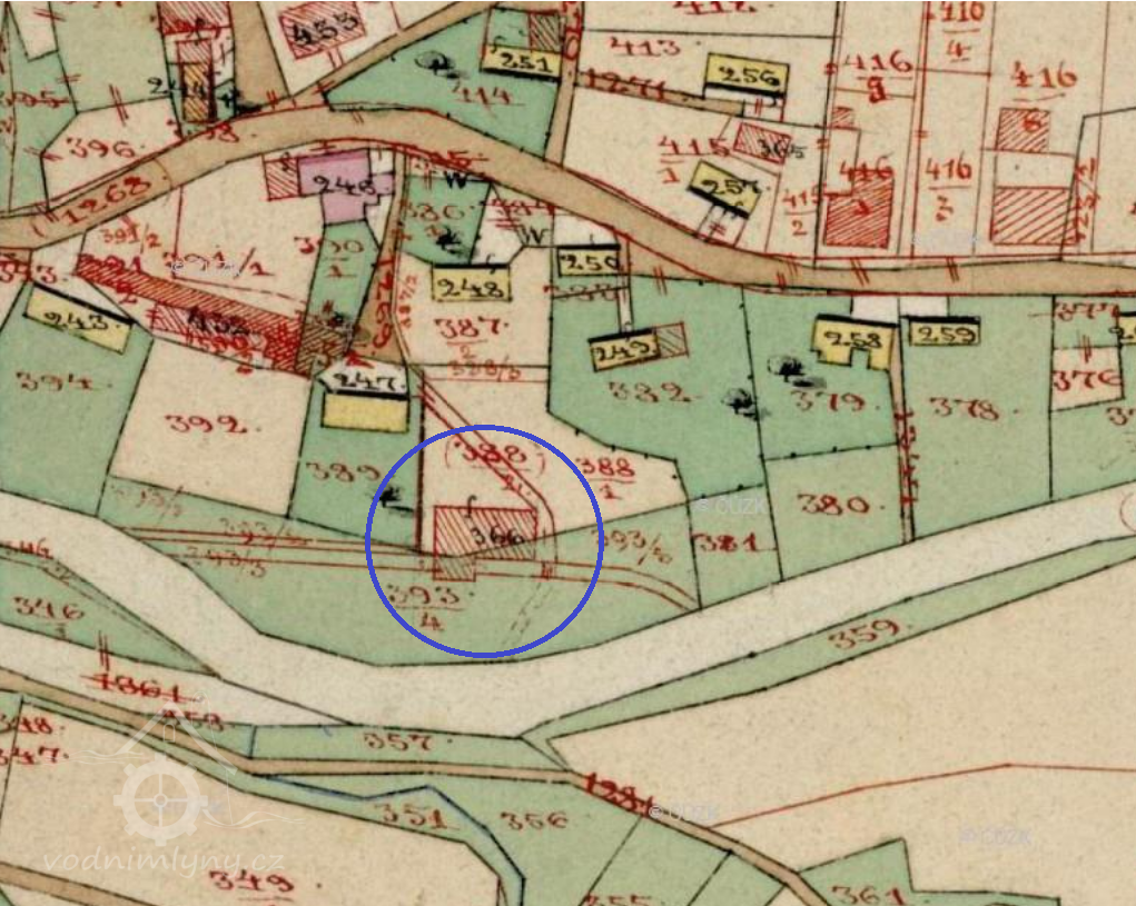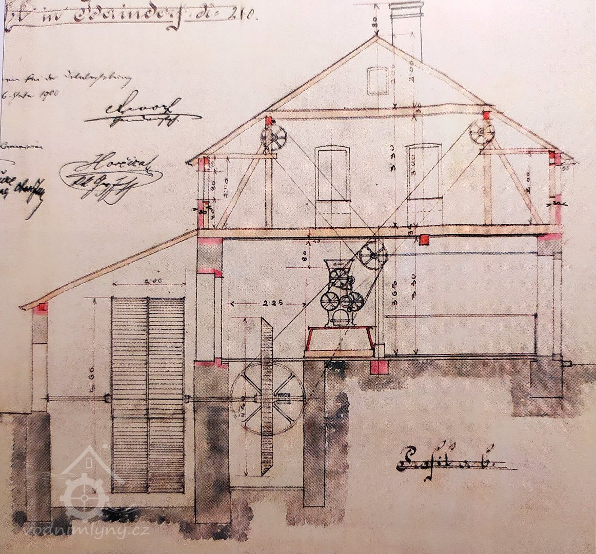 Popis1930: 1 kolo na střední vodu, hltnost 0,186 m3/s, spád 1,6 m, výkon 3,33 HP