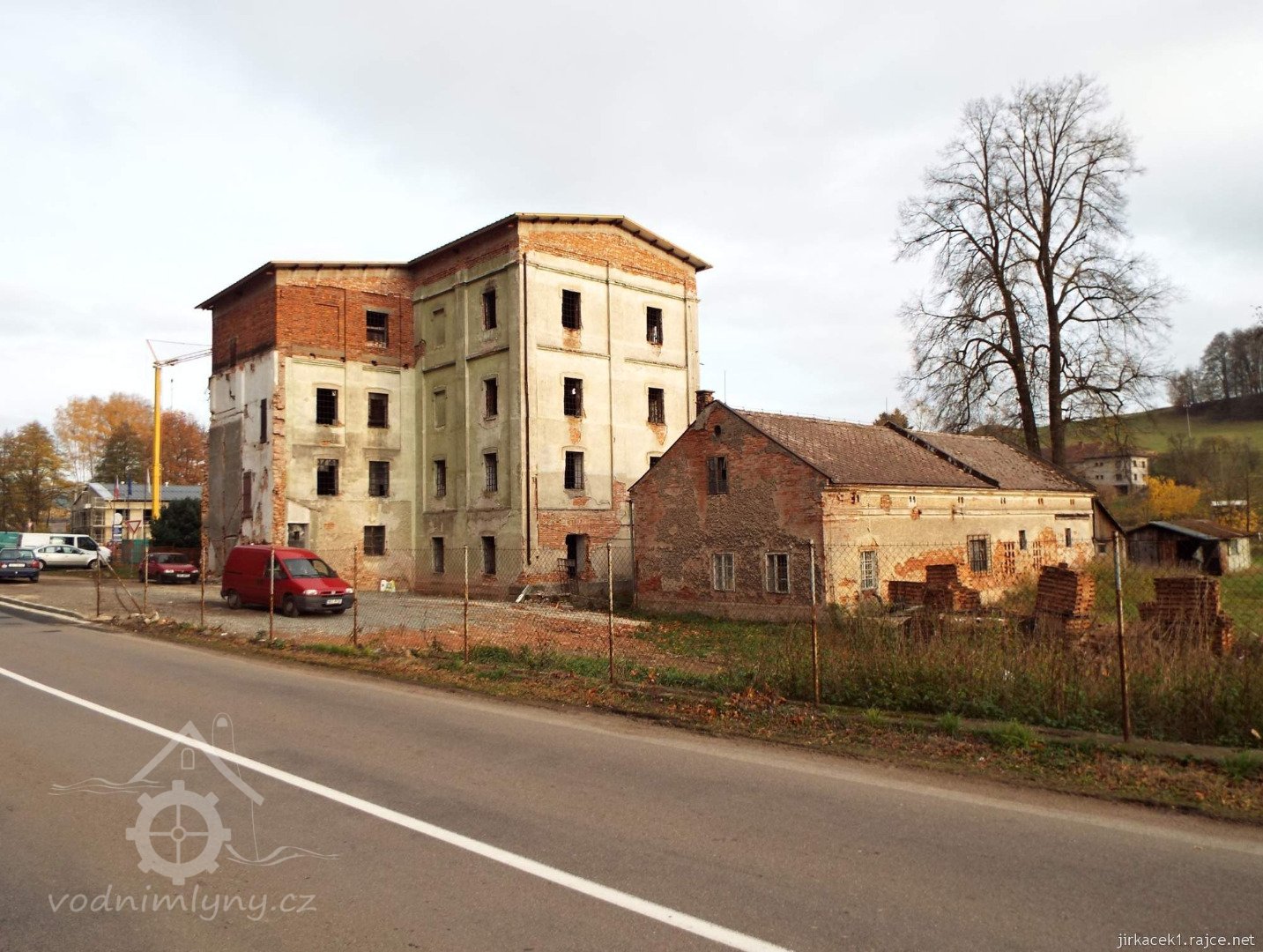 Mlýn je třípatrový umělecký, s obytnou budovou, chlévy, skladištěm, byty pro zaměstnance a kolnami pro vozy. Bývalá textilní továrna, později výrobna elektromotorů a lisovna plastů již k areálu nepatří. Všechny stavby jsou zděné, pocházejí z let 1921 až 1923, kdy proběhla jejich kolaudace. Obytná budova je z roku 1926. K mlýnu patřil ještě sklep za cestou a také pískovcový lom nad mlýnem, přes cestu, odkud byl těžen kámen na stavbu mlýna. Mlýn 2003 do základů vyhořel, zůstaly jen holé zdi.