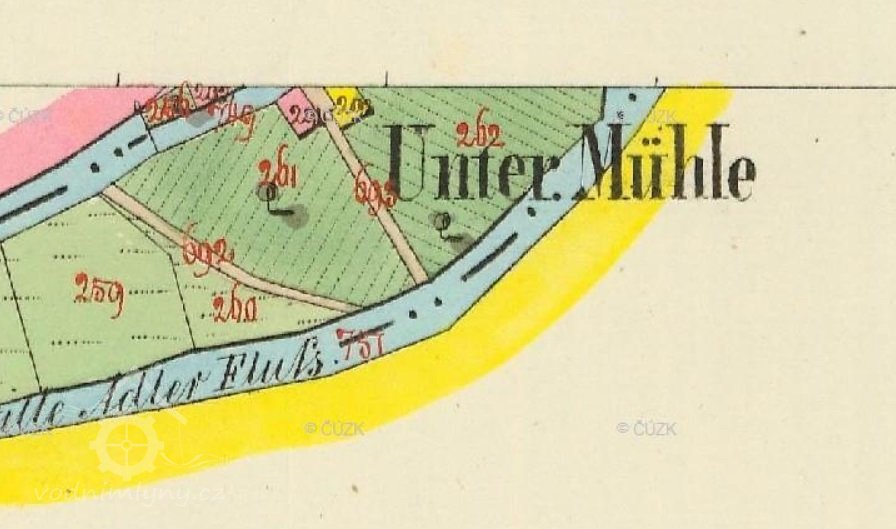 1651 Soupis poddaných podle víry: mlynář Martin Leder (39 let), žena Anna (33), synové Jiřík (18) a Václav (14), dcera Anna (11), všichni katolíci