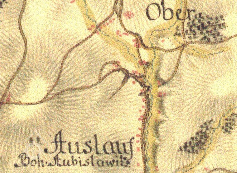 Mlýn s podezděným přízemím a roubeným patrem. Stojí u komunikace z Úbislavic do Stavu. Lomenice je orientována k jihovýchodu. Je členěna vodorovně do tří pásů, ve kterých se střídají pole s klasovitě a střechovitě kladenými latěmi. Ve středním pásu jsou latě položeny svisle, v horní části navazují na obloukovou ozdobu. Osově jsou umístěna menší pravoúhlá okénka. Nad horním pásem je náznak „kočičí procházky“. Štít je ukončen kabřincem se záklopovým prknem s dobře čitelným textem „Léta Páně 1813 dne 28 Srpn tato lomenice gest zdvižená s pomocy Boží a z nákladu Jana Jandourka Mystra Mlinářského z počestno Obce Oubyslaw. Mistr tesařský Jozef Jiřiště“. Souběžně s komunikací je budova mlýna, ke které je kolmo připojen chlév a stodola. Nízká podezdívka mlýna je z hrubě opracovaných nepravidelných pískovcových bloků. Světnice a síň je vyzděna. Okna jsou usazena v dřevěných šambránách a jsou dělena do šesti polí. Patro je roubené, s okny zasazenými v pozici oken v přízemí, dělení je shodné. Souběžně s komunikací je na stropních trámech s profilovaným zhlavím usazena pavlač. V průčelí stavby pavlač schází, zůstaly pouze trámy s profilovaným zhlavím. V zadní části mlýna, orientované na SZ je replika štítu. Na záklopovém prkně je uveden rok 1815. Střecha je tvořena štípaným šindelem. Ve valeném sklípku je klenák s rytým letopočtem 1734 (1737?).